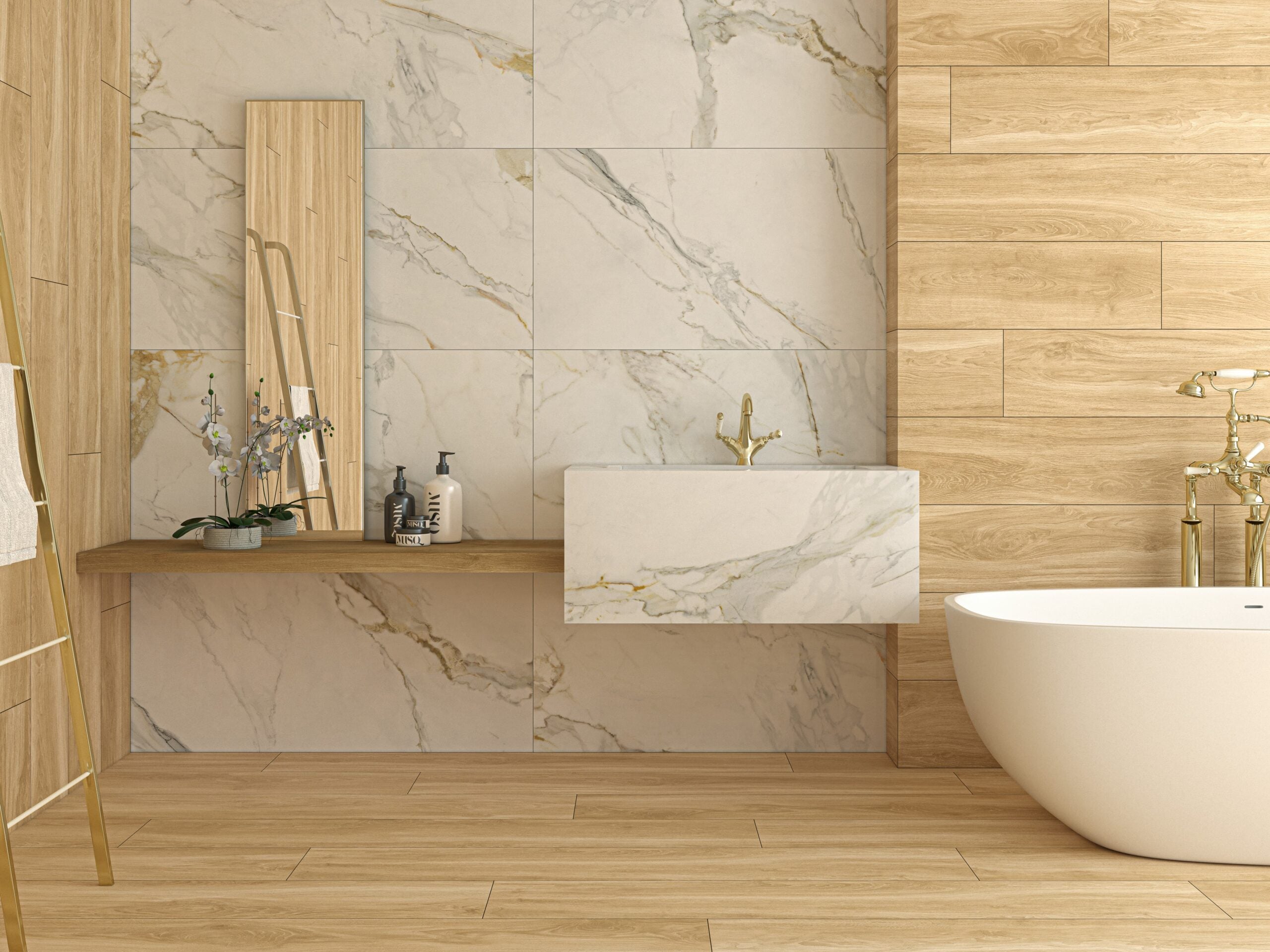 Nous proposons une large gamme : grès cérame, faïence, mosaïque, carreaux grand format, imitation bois, pierre, marbre, béton, terrazzo, métal, et carrelages extérieurs antidérapants.
