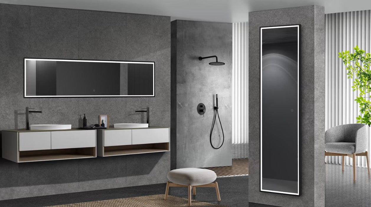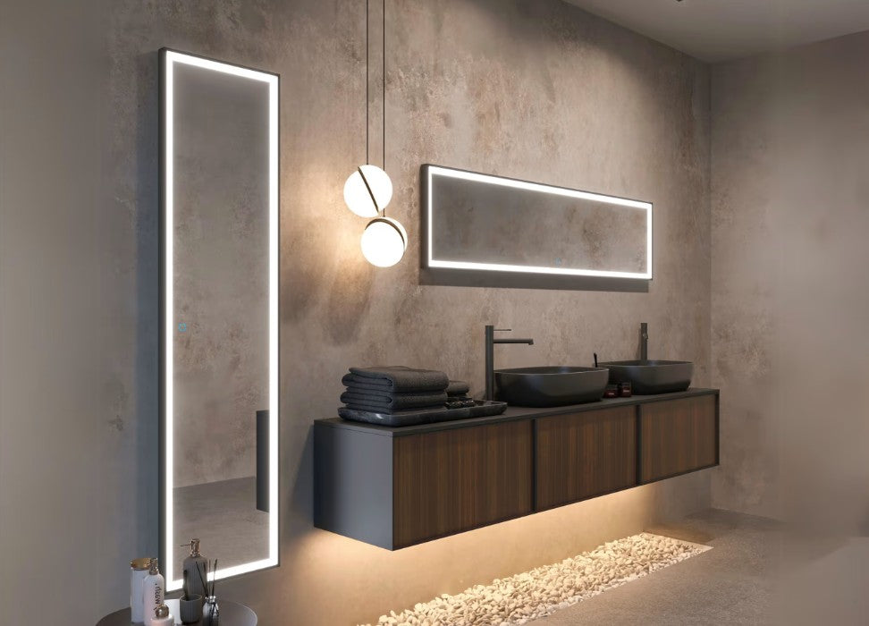 Un miroir sophistiqué qui conjugue design moderne, confort lumineux et performance durable pour une salle de bain haut de gamme.