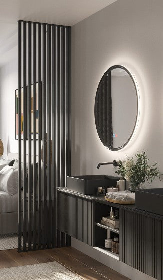 Miroir Salle de Bain LED Réglable - Noir Mat - Commandes Tactiles & Anti-Buée - NÉPAL LEDIMEX