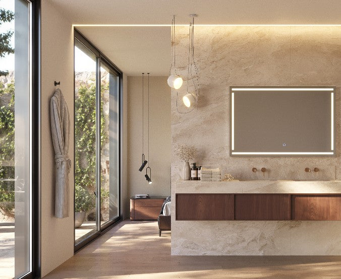 Miroir Salle de Bain LED Rétro-éclairé (6500K) - Commandes Tactiles & Anti-Buée - LISBOA LEDIMEX