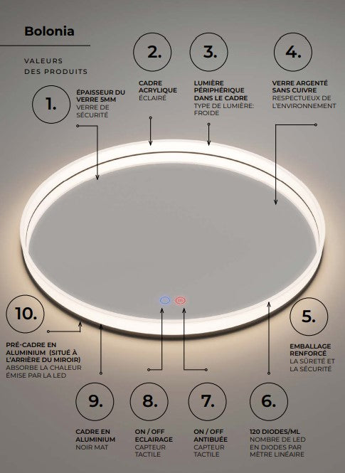 Miroir Salle de Bain LED – Commandes Tactiles & Anti-Buée – BOLONIA LEDIMEX